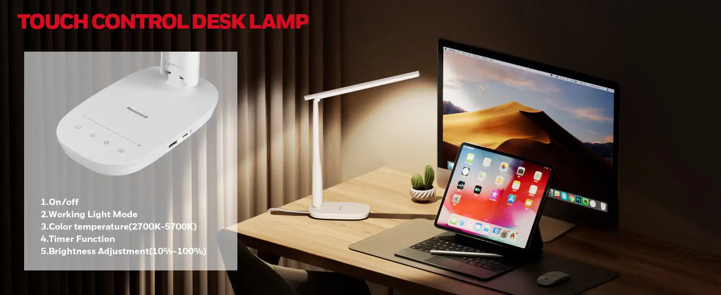 Mit ihrem schlanken Design, der intelligenten Touch-Oberfläche, verstellbaren Winkeln und Bonus-USB-Anschlüssen beweist die Honeywell HWT-H2, dass großartige Beleuchtung kein Vermögen kosten muss. Sie ist eine kosteneffiziente Schreibtischlampe, die moderne Lebensstile unterstützt – vom hybriden Arbeiten bis zum digitalen Lernen.