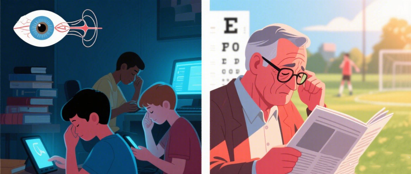 Wie von der Harvard Medical School hervorgehoben, sind die Myopieraten in den letzten Jahren weltweit stark angestiegen. In den Vereinigten Staaten sind etwa 30 % der Jugendlichen jetzt kurzsichtig – ein Trend, der hauptsächlich auf anhaltende Naharbeitsaktivitäten und reduzierte Zeit im Freien zurückgeführt wird. Zusammenfassend lässt sich sagen, dass jugendliche Augen zwar eine schnelle Entwicklung und starke Fokussierfähigkeiten besitzen, sie aber auch anfälliger für Sehprobleme durch falsche Sehgewohnheiten sind. Im Gegensatz dazu haben sich die Augen von Erwachsenen vollständig entwickelt, mit verminderter Akkommodationsfähigkeit und einer größeren Neigung, altersbedingte Veränderungen wie Presbyopie und trockenes Auge zu erleben.